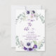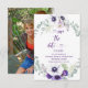 Vivid purple, violet, white and lavender watercolor wildflowers with matching greenery and room for your photo on the back. Save the date is in a special font that you can change the color of by clicking "Customize Further" and then use the color picker to change the color. Personalize with your own information. If you need help with this invitation or for custom requests you need my help with, do not place this merchandise in your cart. Instead, email me your request at shutterbug600@yahoo.com. I am an independent designer that lists my work for sale through Zazzle; however, they fulfill all aspects of the manufacturing and shipping of said designs. I do not have access to your account and can't see what you have done. Answers to your inquiries can be found at https://www.zazzle.com/about/ask Click the link so that questions about your order or shipping can be answered by Zazzle's wonderful Customer Care team members.