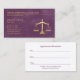 Purple Lawyer Scales of Justice Law Firm Appointment Business Cards. Professional, elegant legal law company business cards. Feature a golden logo (flat print not foil), firm and personal details, appointment card on the back. Background color is easily customized. Perfect attorney at law business cards. Designed by http://www.superdazzle.com Appointment