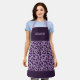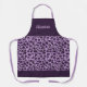 Trendy feminine apron featuring a stylish purple leopard spot print pattern; customizable by adding your name in lavender lettering on the dark purple stripe on the upper part