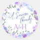 Purple & Light Blue Floral Wreath Wedding Monogram Classic Round Sticker
