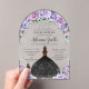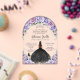 Personalize this modern floral Quinceañera / Sweet 16 birthday acrylic arch invitation easily and quickly. Simply click the Edit Using Design Tools button to further edit the text, change font styles and font colors. Featuring a girl dressed in a glittery black dress, pretty purple, lavender, lilac flowers and a silver princess crown. The butterfly, quince girl and crown are movable, resizable, multipliable and removable. Customize it to suit your occasion. Matching items available in store. (c) Somerset Fine Paperie by The Happy Cat Studio.