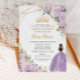 Purple Lilac Floral Princess Gold Quinceañera XV Invitation