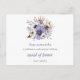 A convenient way to ask this special question Will You Be My Maid of Honor. A bouquet of purple, lilac and cream watercolor florals and foliage is above the elegant lowercase typography. The text is easily personalised.