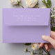 Purple lilac return address wedding envelope designed to add a soft, elegant touch to your wedding stationery. Perfect for invitations, RSVP cards, and wedding inserts, this envelope complements romantic, vintage, and classic wedding themes. Ideal for coordinating with lilac or purple wedding suites while keeping your mailing polished and cohesive.