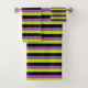 Purple, Lime Green and Black Stripes Bath Towel Set