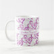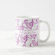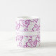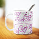 This fun design features two linked heart patterns. The top larger pattern purple heart and behind are linked black outlined hearts with template text on both sides of the handle. Personalize the text or click customize to select a font style, size, and color you prefer. Select from a variety of mug styles to fit your taste.