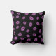 Purple Lipstick Kisses on Black Background Pattern Throw Pillow