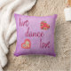 Purple Live Love Dance Throw Pillow--pretty purple throw pillow with the words, 'live, love dance' and accented with retro inspired hearts. For the dancers, dance teachers, and for those who just love to dance!