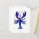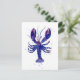 a decorative watercolor illustration of a lobster in blue and purple colors on a postcard.