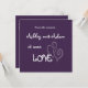 Plain white envelopes are included with paper invitations and will come to fit the invitation size you select. If you don’t need the envelopes, you may choose to not receive them by selecting the dropdown below "Envelopes" and choosing "None." If you’d like to have a design on your envelopes, you can browse all of these available envelopes to find the design that complements your Purple Love With Hearts Wedding Invitation.