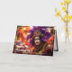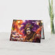 💚💜💛 This exquisite card showcases a Mardi Gras parade performance artist in a captivating closeup. Their face is adorned with a stunning array of colorful makeup, a vibrant fusion of rich purples, blues, and golds that creates an enchanting and dynamic visage. The colors swirl together in a mesmerizing dance, capturing the lively spirit of the festival.