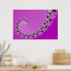 A cool purple-colored zoomed-in view of a spiral portion of the Mandelbrot Set.