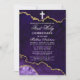 Modern Elegant Watercolor Purple Violet and Gold Marble Agate Geode First Holy Communion Invitation - Photo Back