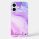 Purple Marble Monogram Custom Name Unique iPhone 16 Case