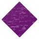 Beautiful and elegant graduation cap with a pattern of mathematic equations and graphics over a purple background. Illustrated and designed by Patricia Alvarez.