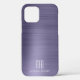 Purple Metal Monogram iPhone 12 Case. Fully personalize this elegant purple brushed metallic iPhone 12 case with you monogram and name.