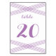Simple and elegant Modern Deco Wedding Table Number Card with a striped criss-cross hatched art deco design in purple. This classic table card can be easily customized with your wedding details. For more customization options, click on the Customize It button.