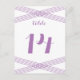 .Simple and elegant Modern Deco Wedding Table Number Postcard with a striped criss-cross hatched art deco design in purple. This classic table card can be easily customized with your wedding details. For more customization options, click on the Customize It button.