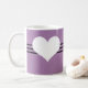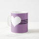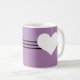 Sweet and charming Modern Heart Mug featuring a lavender background and a cute heart and striped border. This cute and girly mug is perfect for enjoying your favorite hot beverage! Customize with the text of your choosing. Click on "Customize" to find additional personalization options.