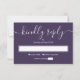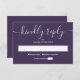 A simple modern minimalist purple elegant signature script RSVP card with your details set in chic typography. Designed by Thisisnotme©