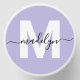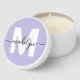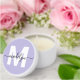 Create Your Own Stylish Modern Custom Girly Purple Name Monogram Mini Candle. This chic and simple mini candle features a bold white initial set against a soft purple background on the top, with your name overlaid in elegant black script for a personalized touch. All colors can be customized to match your style. Perfect as a party favor, bridal or baby shower favor, bridal party gift to or from the bride, a just because gift, or a cute little stocking stuffer. A sweet and stylish way to make any occasion feel a little more special.