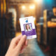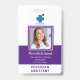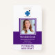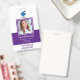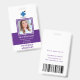 This modern purple security ID badge features your name, role, title and photo. Designed for hospital and medical center employees. On the mockup, design is purple but you can easily change the colors.