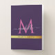 calligraphy design with gold stripe and pink colors on an elegant purple background. The features of the card can be personalized.