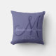Personalized purple tone on tone monogrammed pillow with last name initial, bride and groom first names and wedding date in script font typography overlay printed on a solid color background. Elke Clarke© for MonogramGallery at Zazzle. Makes a great gift for newly weds or the wedding couple. Great for your bedroom, favorite chair, as fun decor in your family room or formal decorative addition to your living room as a wedding keepsake.