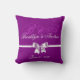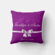 Purple monogrammed wedding pillows with bow and customizable text - you can change wedding date and add initials
