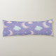 Snuggle up in celestial comfort with this purple moon & clouds body pillow, featuring a crescent moon, starry sky, and fluffy cloud pattern on a calming purple background.