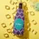 Purple Moroccan Tile Pattern Teal Monogram Bottle Cooler