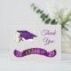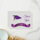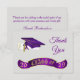 Purple and gold graduation Thank You card with mortar, diploma and ribbon with text "class of" written in gothic style