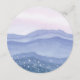 Wedding Menu Card with Morning mountain landscape. Softness blue Nature landscape. Silhouettes of mountains and dandelion flowers. Watercolor painting background Wedding Menu Card. Purple Mountains Collection.