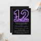 Purple Neon 12th Birthday Invitation