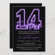 Purple Neon 14th Birthday Invitation
