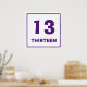 Purple number thirteen on white background with purple border. Help your little one learn the numbers with this number thirteen design.
