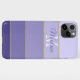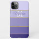 Personalize this with your name and initial to make a fun phone case that's uniquely yours. It features five different gradient color block bands of purple, each one separated by a gold glitter stripe.