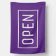 Open sign flag. Simple white on purple flag with a frame.