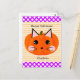 A personalized Happy Halloween pumpkin cat postcard, which you can easily personalize with her name if wanted. Please delete sample text if no text is wanted. This orange and purple kid's Halloween postcard is purr-fect for cat lovers.