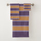 Purple Orange Stripes Pattern Bath Towel Set designed by Nisha Prabhu. This purple orange stripes pattern bath towel set is the perfect addition to your bathroom. The set includes a bath towel, hand towel, and washcloth, ensuring that you have the perfect towel for every need. Each towel features a vibrant striped pattern in shades of purple and orange, adding a stylish and modern touch to your bathroom decor. Upgrade your bathroom with this luxurious and visually appealing bath towel set.