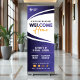 Perfect for church entrances, lobbies, sanctuaries, or outdoor displays, this vertical banner clearly highlights service times and key elements such as worship, prayer, fellowship, and breakfast. Its professional, eye-catching design makes it ideal for weekly services, special events, and outreach efforts, while remaining versatile enough to complement a wide range of church branding styles.