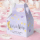 This beautiful favor box features a watercolor moon and stars and your custom text along with the words "Over the Moon" in modern calligraphy script. Use the template form to add your information. The Customize feature can be used to change the font and the text layout.