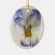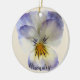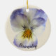 Purple Pansy Ornament with customizable texts and background color on both sides.