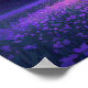 As the sun descends below the horizon, a breathtaking sight unfolds before your eyes. A vast field of vibrant purple flowers spreads out before you, their petals glowing in the warm light of the setting sun. In the distance, a lush forest is silhouetted against the colorful sky, its trees turned a deep shade of purple by the fading light.