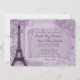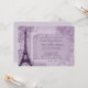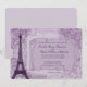 Invite guests to your upcoming wedding with a Purple Parisian Wedding Invitation. Invitation design features the Eiffel Tower, a scroll where you can detail the information of your bridal shower adorned with damask and postal stamp embellishments. Additional wedding stationery available with this design as well.