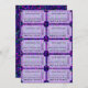 Place a few purple party raffle tickets in your invitations, guests love them. They simply have to write their name on the ticket and hand it in at the event. No need for duplicate tickets. The number on the ticket is the date of the event so until they turn in their ticket, they have a little reminder. Supplies you'll need are scissors to cut between the tickets (unless you wish to give them the whole sheet.) I made the background on the front and back a nice glitter look so you don't have to worry about cutting the scalloped corners. The tickets look just as good as rectangles. Hope you have a great event! Amelia Carrie