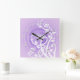 Purple Pastel Spirals, Filigree & Flowers Square Wall Clock