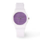 I only have one complaint. I ordered the watch with clear case and strap, and what was sent was white case and strap. I'm going to keep it because 1) it looks very nice in white, and 2) it would take too long to get a replacement made and sent in time for my occasion. Aside from the mix up with the color, the watch does look very good in white. The purple dial is actually sparkly which did not show in the online images. That was a nice surprise. If you like Swatch watches this is very similar to those. It's 33.6mm in diameter, 10.5mm thick, and 40.6mm lug to lug. Stainless steel case back says 3ATM/30m WR, so no swimming or showering or submerging this one. If you like Woodstock, this is a great choice.