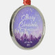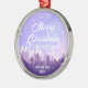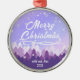 Purple Peaceful Snow Forest Merry Christmas Metal Ornament