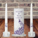 Personalize special candles for your wedding ceremony with a set of Purple Peacock Leaf Vine Unity Candle Set. Candle design features a light gray grunge background with a vibrant purple peacock with a leaf vine embellishment. Personalize with the groom and bride's names along with the wedding date, and taper candles with surnames. Additional wedding stationery and gifts available with this design as well. Need help with customization? Please contact me and I will work out the wording and details to fit this design to your satisfaction.